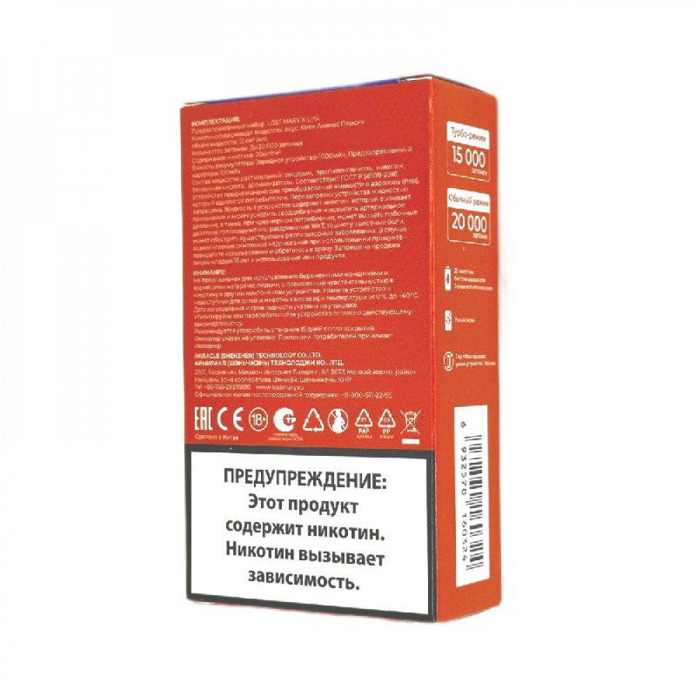 На складе Код товара: Lost Mary X-Link 20000 - Перечная мята